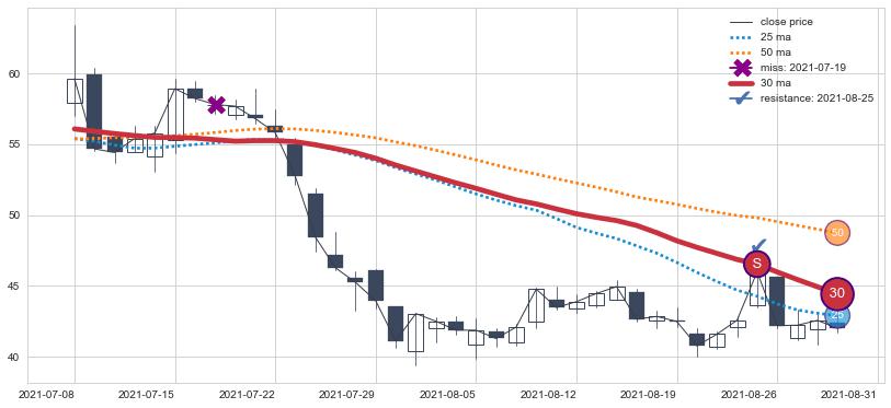 下跌趋势2021-07-08-2021-08-31,均线30确认关键阻力1处