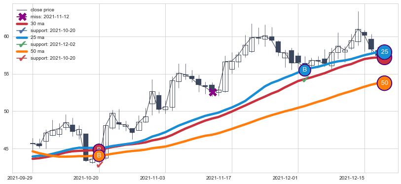 上涨趋势2021-09-29-2021-12-17,均线25, 50, 30确认关键支撑2处