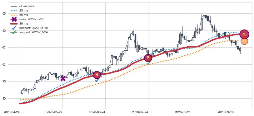上涨趋势2020-04-24-2020-09-23,均线30确认关键支撑2处