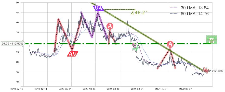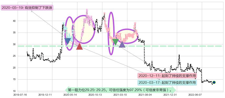 ♘ 阻力价格位29.25,可信任强度97.29%,距离最后交易2022-08-12形成的收盘价格13.74相差 +112.90%