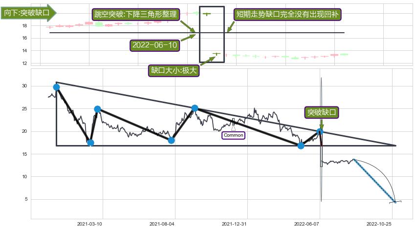 ➢ 2022-06-10形成:向下跳空【突破】缺口