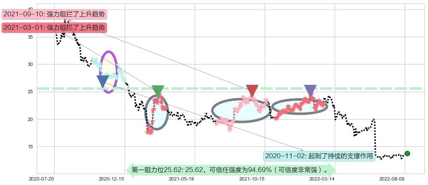♘ 阻力价格位25.62,可信任强度94.69%,距离最后交易2022-08-12形成的收盘价格13.73相差 +86.58%