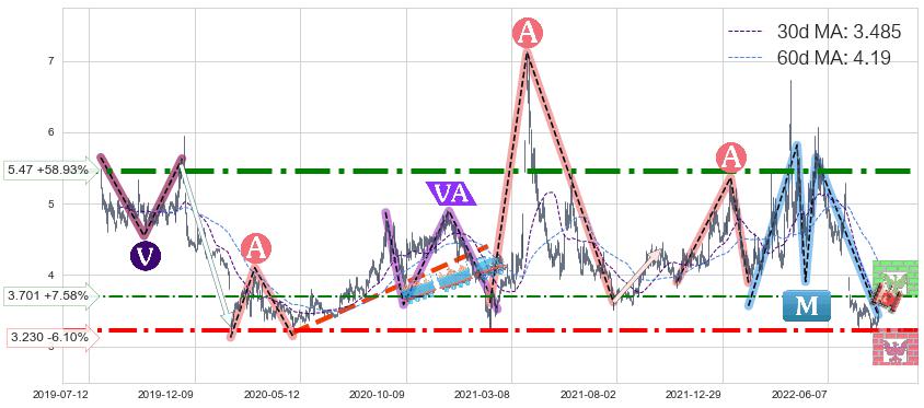➢ 【仅预测突破】最后价格:3.440与预测突破价格:4.05→【空间中等】后续最小【整理】第一目标价格→(2022-09-28: 6.55 )