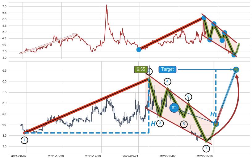 ➣ 最小中继整理涨幅→𝐇: 2.500 (𝐇旗杆的长度:旗杆起点→顶点)