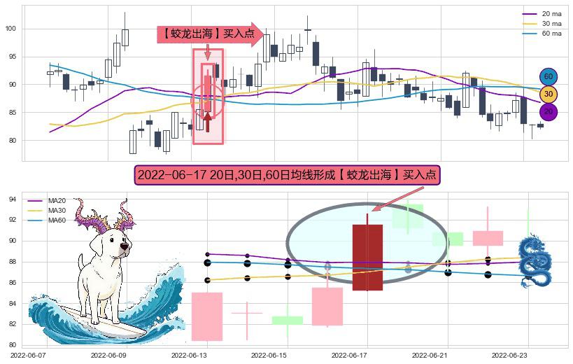 ⚀ 2022-06-17日显现 20日-30日-60日均线 【蛟龙出海】买入点 看多信号,后市看涨,买入