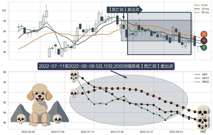 ⚀ 2022-07-12-日至2022-08-08-日显现 5日-10日-20日均线 【死亡谷】卖出点 看空信号,后市看跌,卖出