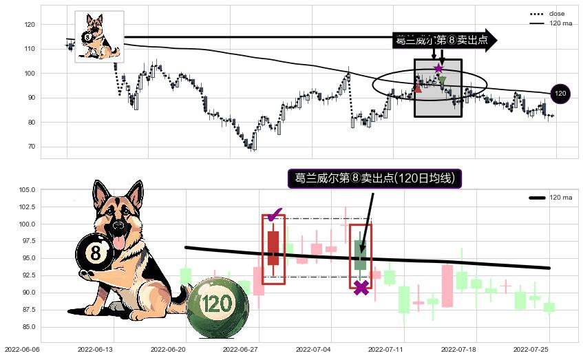 ⚀ 2022-07-06-日显现 葛兰威尔均线 120日均线 第⑧卖出点 下降趋势的中继信号,后市看跌,卖出信号