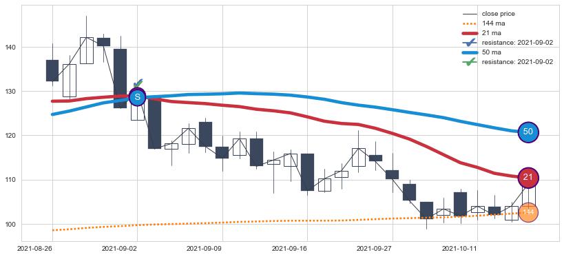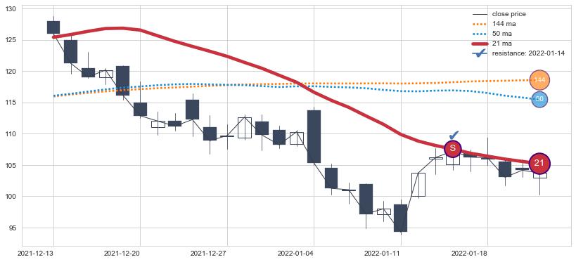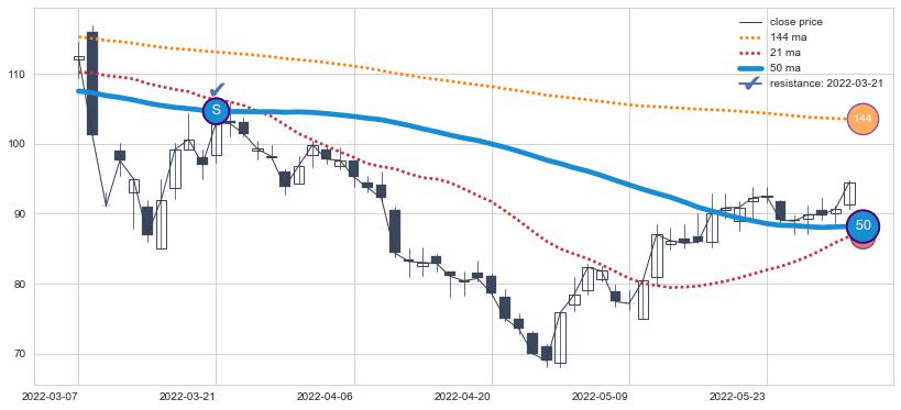 ⚂ 2022-06-28-日均线向上突破,2022-07-06-日重新下穿均线破位,均线阻力再次生效