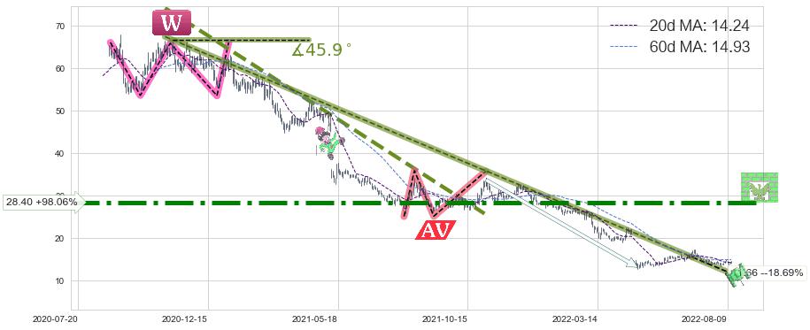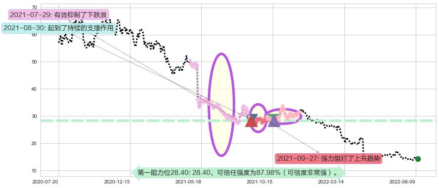 ♘ 阻力价格位28.40,可信任强度87.98%,距离最后交易2022-08-12形成的收盘价格14.34相差 +98.06%