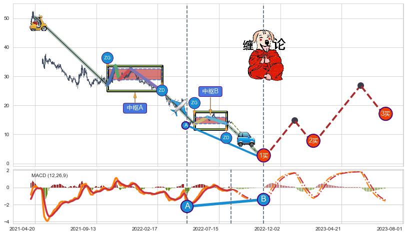 ➣ 【未完成】缠论 起点:2021-04-21, 完成第1中枢A,完成第2中枢B,到达2022-08-12
