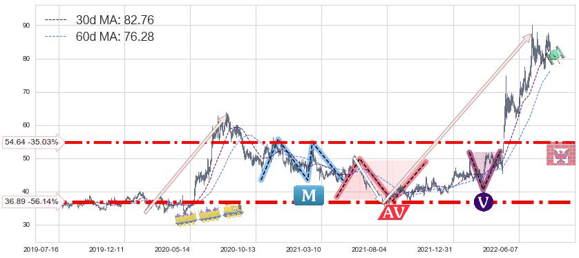 ♞ 30日均线:82.76,60日均线:76.28→ 快线>慢线