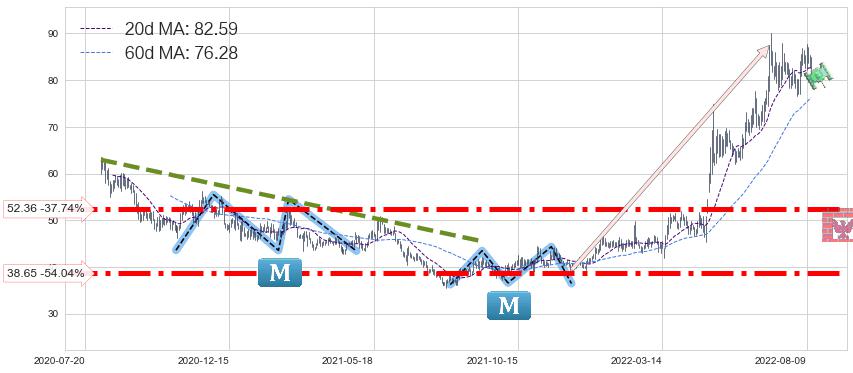 ♞ 20日均线:82.59,60日均线:76.28→ 快线>慢线