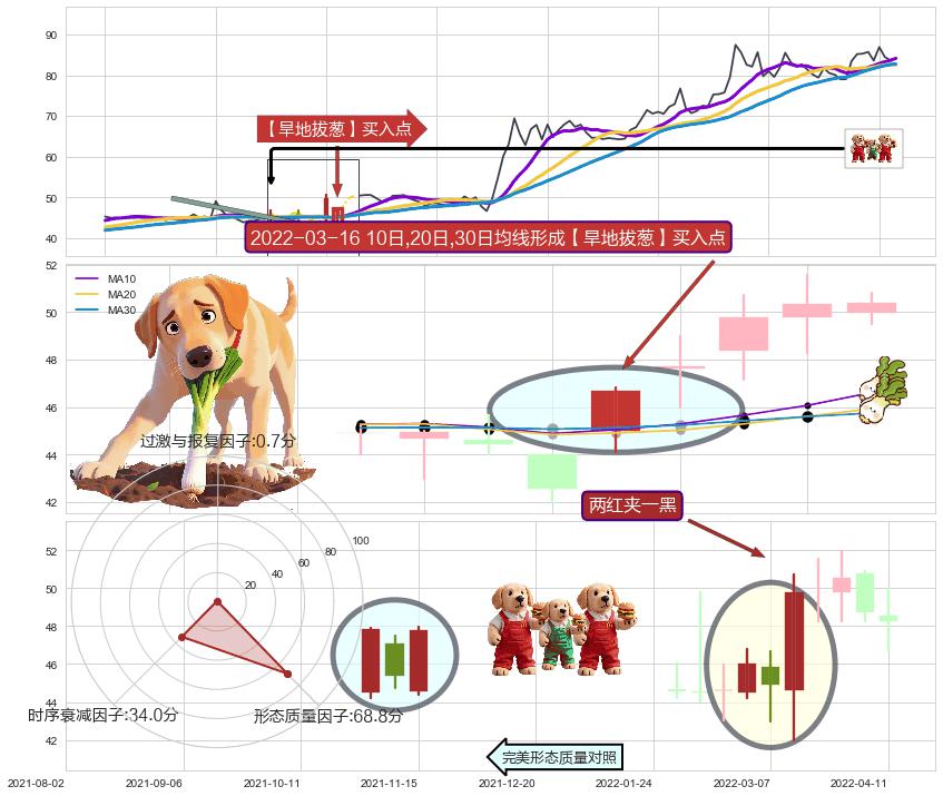 | 2 🅚:上涨两颗星 | 上涨三颗星 ➕ 🎢:【旱地拔葱】买入点均线组合买入点信号形成后,猜想后续向上脱离整理形态,持续突破上升 ☞ 看多信号 ⇥ 【均线】交织【🅚线】⇥ 综合量化分数: 51 | > |