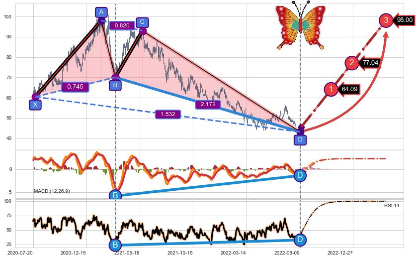 ➣ 已完成【蝴蝶】形态起点X: 2020-07-24, 终点D: 2022-08-10, 共498交易日