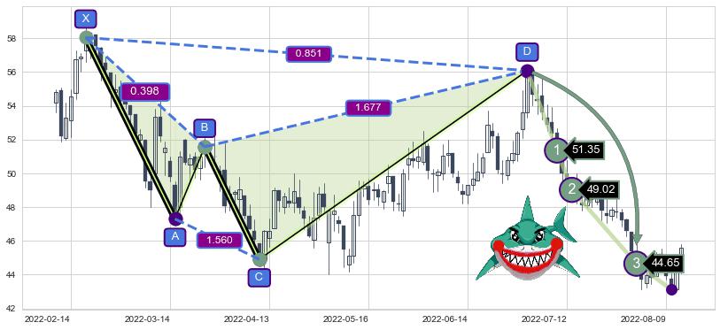➣ 已完成【鲨鱼】形态起点X: 2022-02-17, 终点D: 2022-06-30, 共90交易日
