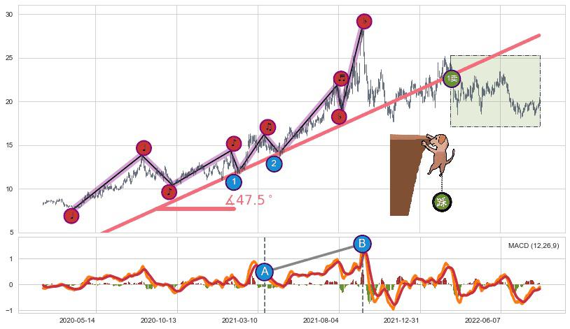 ♘ 支撑价格位14.34,可信任强度75.17%,距离最后交易2022-08-12形成的收盘价格19.64相差 -26.97%