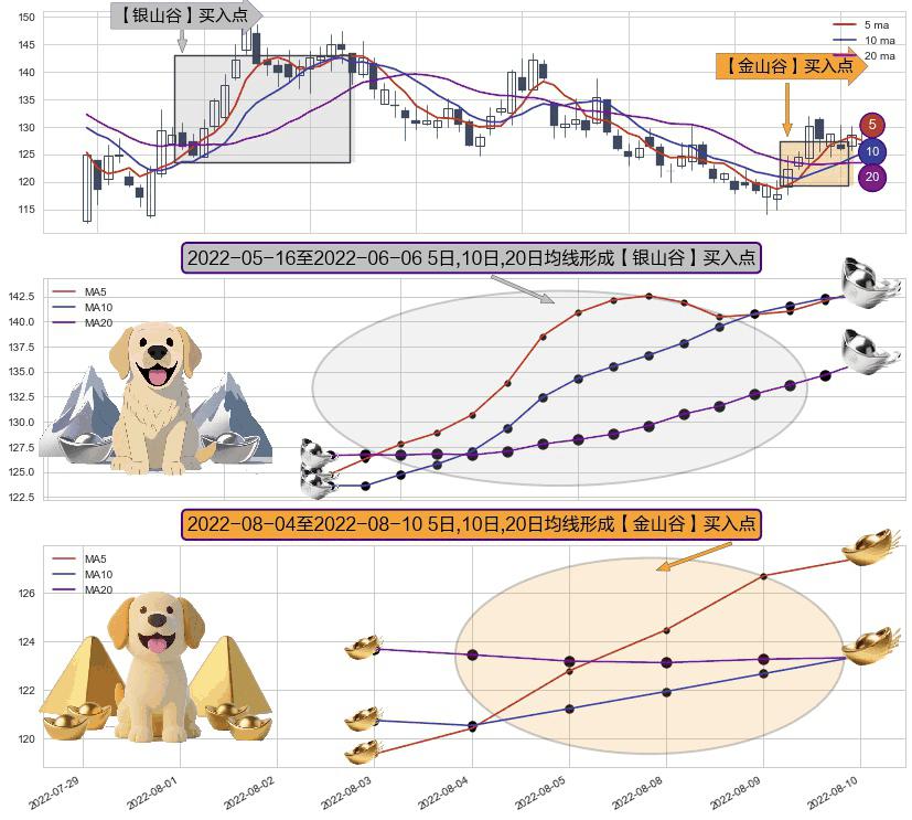 ⚄ 2022-08-05-日至2022-08-10-日显现 5日-10日-20日均线 【金山谷】买入点 其再次确认了买入信号,可靠性更强,买入