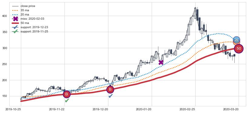 ⚀ 中期均线MA8上穿长期均线MA13形成的交叉是标准 黄金交叉