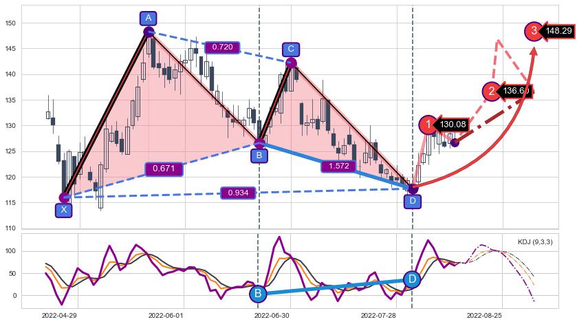 ➣ AI预测: 假定反转继续,第❷价格目标位置(2022-08-23, 136.60)