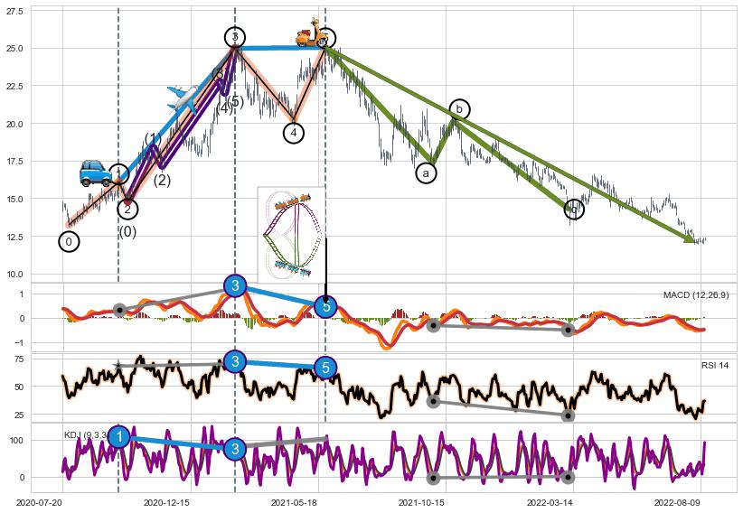 ➢ a,c调整浪MACD, RSI, KDJ走势都【未出现】背离,abc走势延续, 5浪反转概率增强