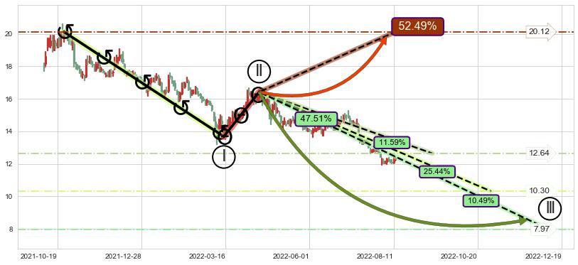 ➢ 循环浪继续向下【最低】位置(2022-12-19, 7.97),匹配聚类样本比例22.07%, 可能性概率10.49%