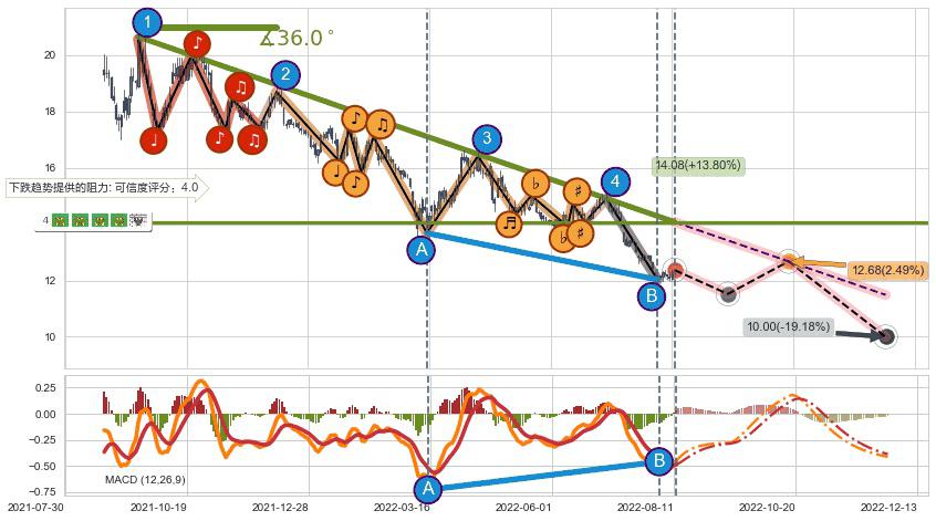 ➣ 预测:2022-10-18,【小幅反弹】稳定目前下跌趋势的前提下,预测价格:12.68