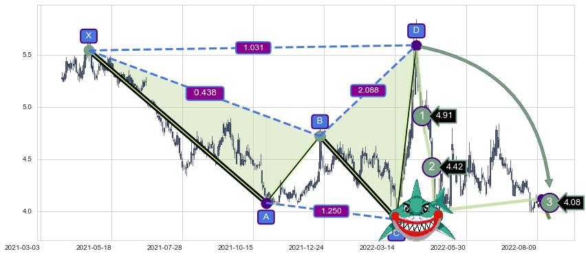 ➣ 已完成【鲨鱼】形态起点X: 2021-04-21, 终点D: 2022-04-06, 共232交易日