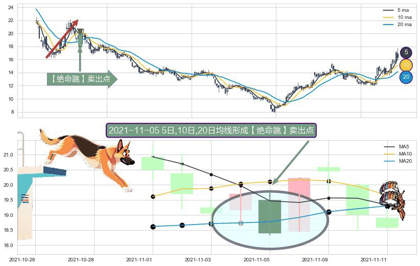 形态多维评估: ⚀ 2021-11-05日显现 5日-10日-20日均线 【绝命跳】卖出点 看空信号,后市看跌,卖出