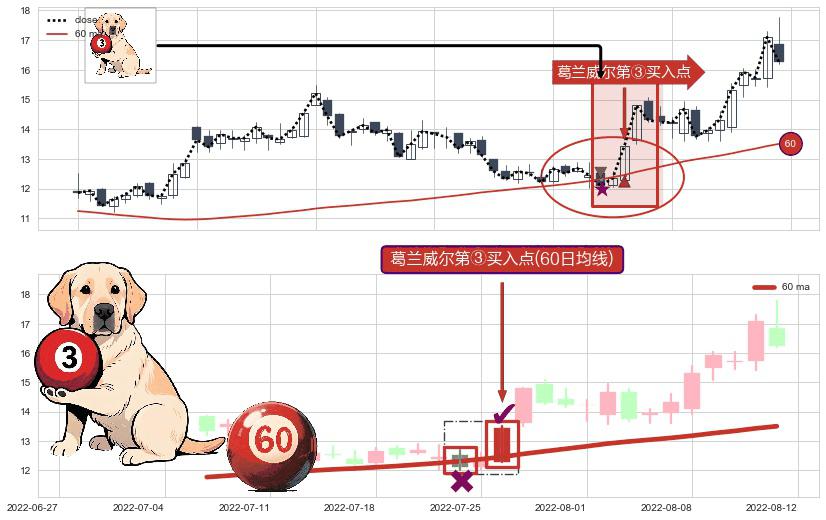 形态多维评估: ⚀ 2022-07-26-日显现 葛兰威尔均线 60日均线 第③买入点 上升趋势的中继信号,后市看涨,买进信号