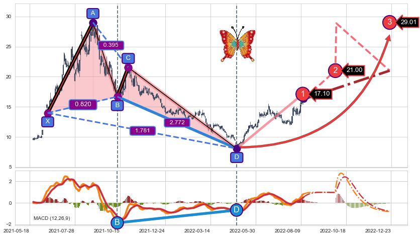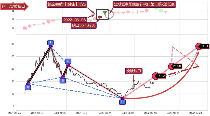 ➣ 已完成【蝴蝶】形态起点X: 2021-06-16, 终点D: 2022-04-26, 共210交易日