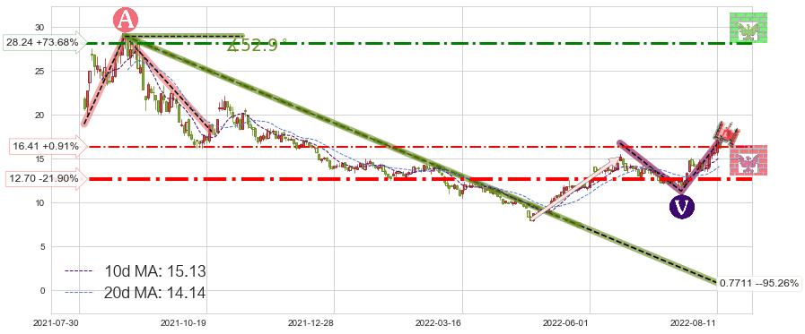♘ 阻力价格位28.24,可信任强度61.95%,距离最后交易2022-08-12形成的收盘价格16.26相差 +73.68%