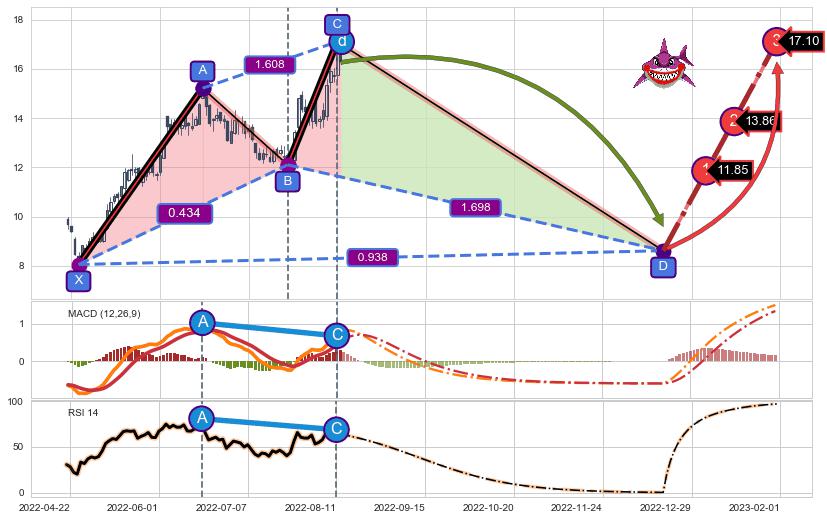 ➣ 未完成【鲨鱼】形态起点X: 2022-04-26, 已到达C点: 2022-08-11, 预测最终D点: 2022-12-19, 共166交易日