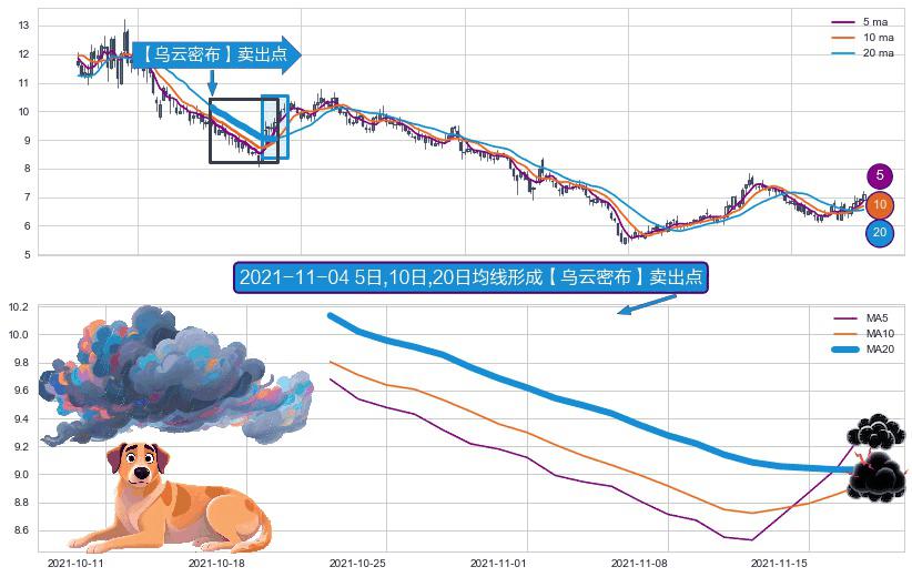 ⚀ 2021-10-21日-2021-11-17日显现 5日-10日-20日均线 【乌云密布】卖出点 看空信号,后市看跌,卖出