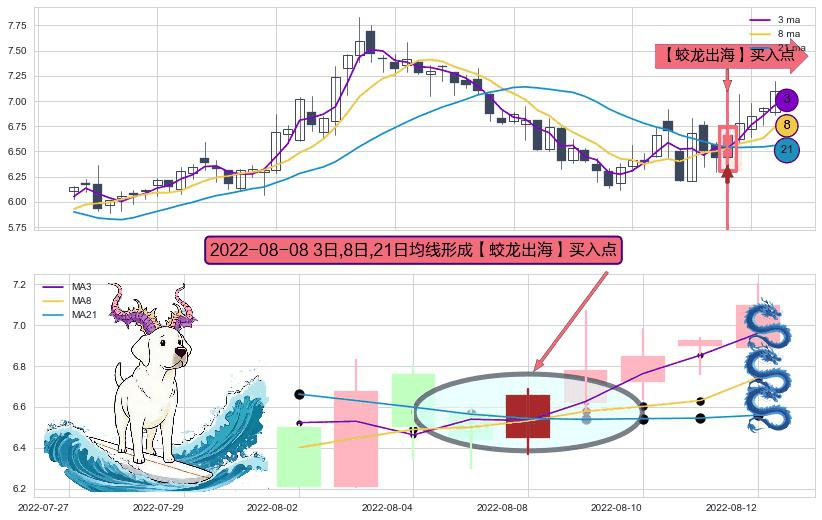 ⚀ 2022-08-08日显现 3日-8日-21日均线 【蛟龙出海】买入点 看多信号,后市看涨,买入
