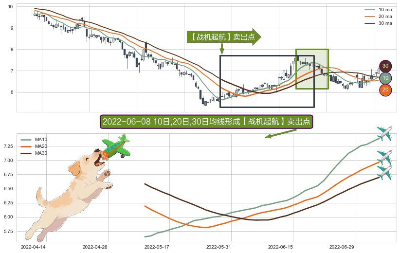 ⚀ 2022-05-11日-2022-07-05日显现 10日-20日-30日均线 【战机起航】卖出点 看空信号,后市看跌,卖出