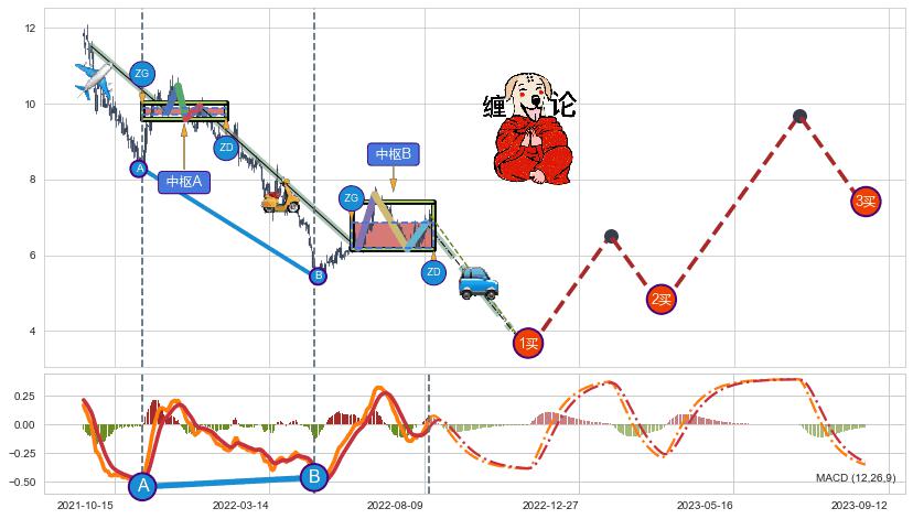 ➣ 【未完成】缠论 起点:2021-09-15, 完成第1中枢A,完成第2中枢B,到达2022-08-12