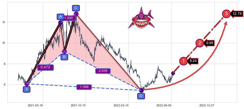 ➣ 已完成【鲨鱼】形态起点X: 2021-03-19, 终点D: 2022-04-26, 共268交易日