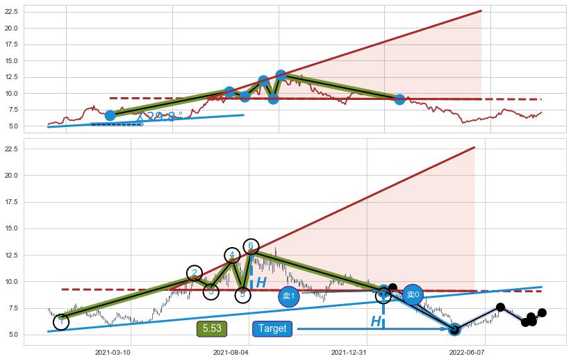 ➣ 【已达成】最小【反转】第一目标价格→(2022-04-26: 5.53 ), 后续继续【反转】下跌动力依然存在,下跌空间适中