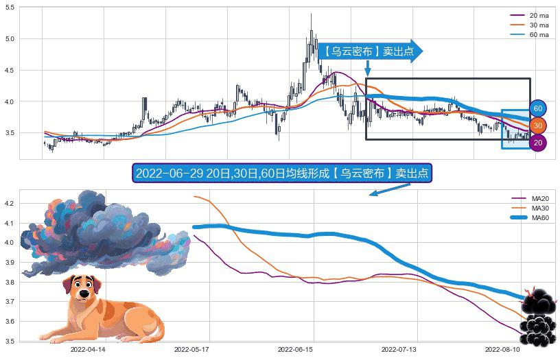 ⚀ 2022-05-12日-2022-08-12日显现 20日-30日-60日均线 【乌云密布】卖出点 看空信号,后市看跌,卖出