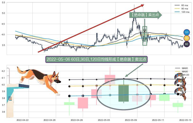 ⚀ 2022-05-06日显现 60日-90日-120日均线 【绝命跳】卖出点 看空信号,后市看跌,卖出