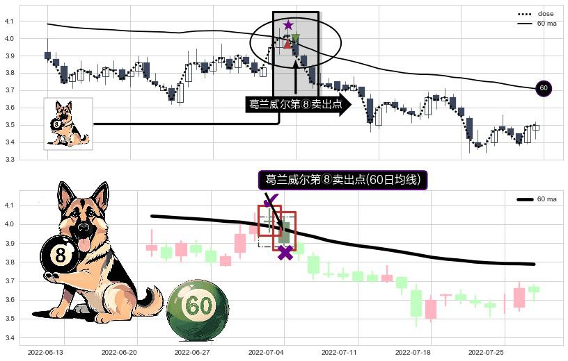 ⚀ 2022-07-04-日显现 葛兰威尔均线 60日均线 第⑧卖出点 下降趋势的中继信号,后市看跌,卖出信号