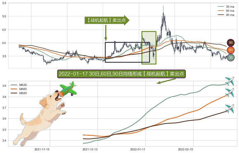 ⚀ 2021-12-03日-2022-03-07日显现 30日-60日-90日均线 【战机起航】卖出点 看空信号,后市看跌,卖出