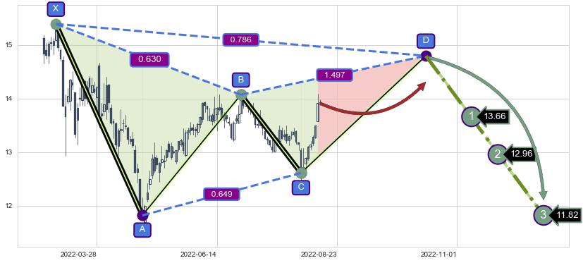 ➣ D点拟合预测价格14.80,距离最后交易收盘价格13.91相差 +6.36%