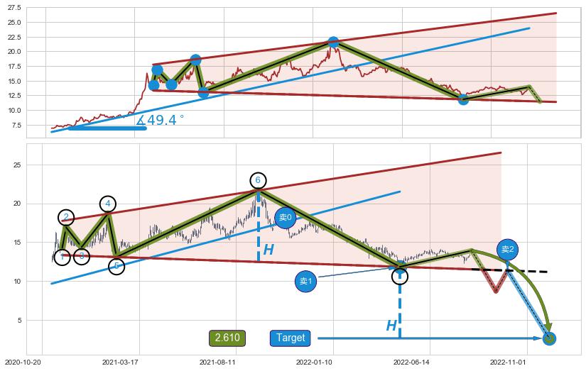 ➣ 【仅预测突破】最后价格:13.91与预测突破价格:11.82→【空间临近】后续最小【反转】第一目标价格→(2022-12-02: 2.610 )