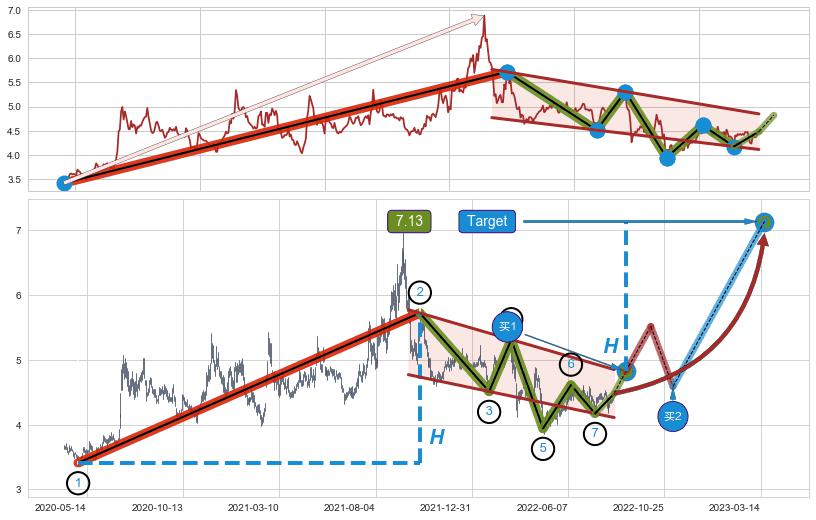 ➣ 最小中继整理涨幅→𝐇: 2.310 (𝐇旗杆的长度:旗杆起点→顶点)