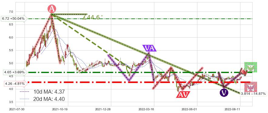 ♘ 阻力价格位4.65,可信任强度81.06%,距离最后交易2022-08-12形成的收盘价格4.48相差 +3.69%