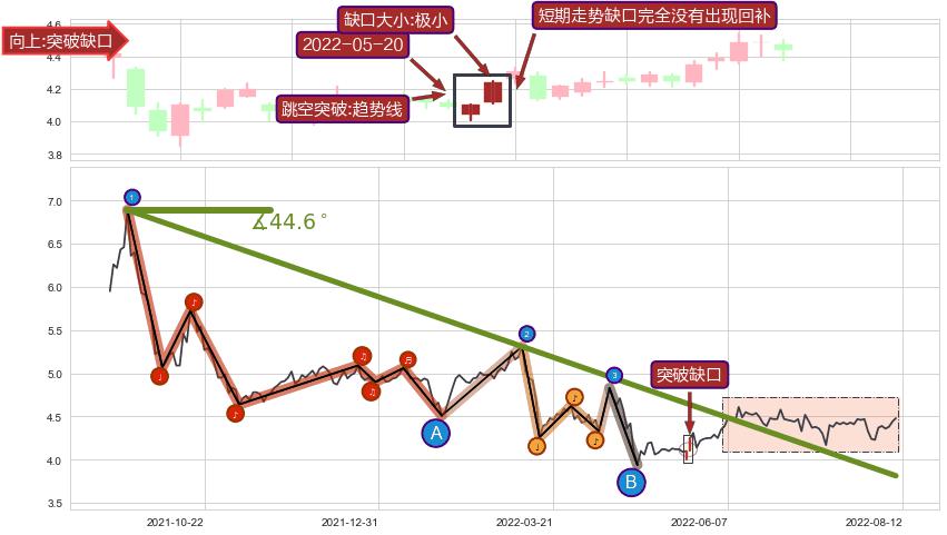 ⚔️ 2021-09-13-2022-05-17下跌趋势存在反转上涨[机会],其原下跌趋势的阻力位(3.814)已被突破[强支撑信号],原下跌趋势角度: 44.6˚
