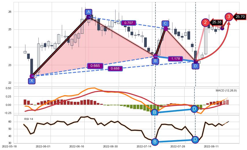 ➣ 未完成【蝙蝠】形态起点X: 2022-02-21, 已到达C点: 2022-08-02, 预测最终D点: 2022-11-01, 共171交易日