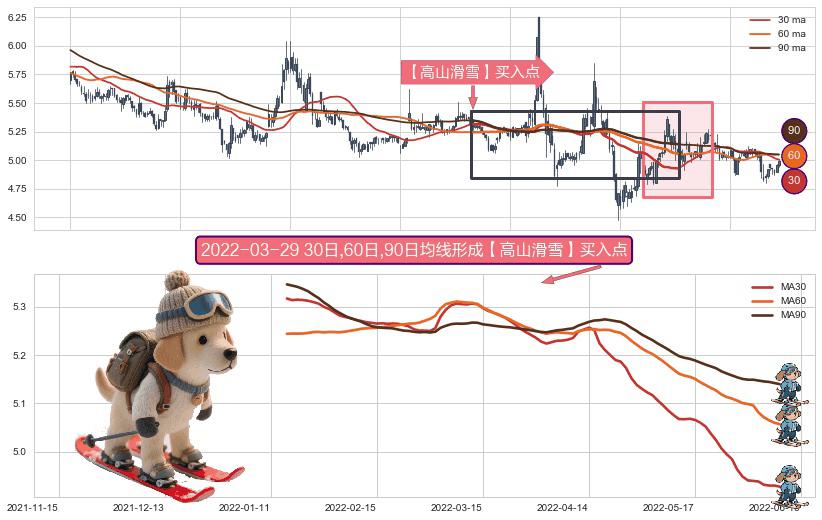 ⚀ 2022-01-14日-2022-06-09日显现 30日-60日-90日均线 【高山滑雪】买入点 看多信号,后市看涨,买入