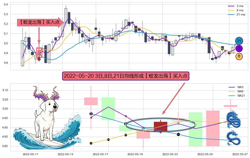 ⚀ 2022-05-20日显现 3日-8日-21日均线 【蛟龙出海】买入点 看多信号,后市看涨,买入